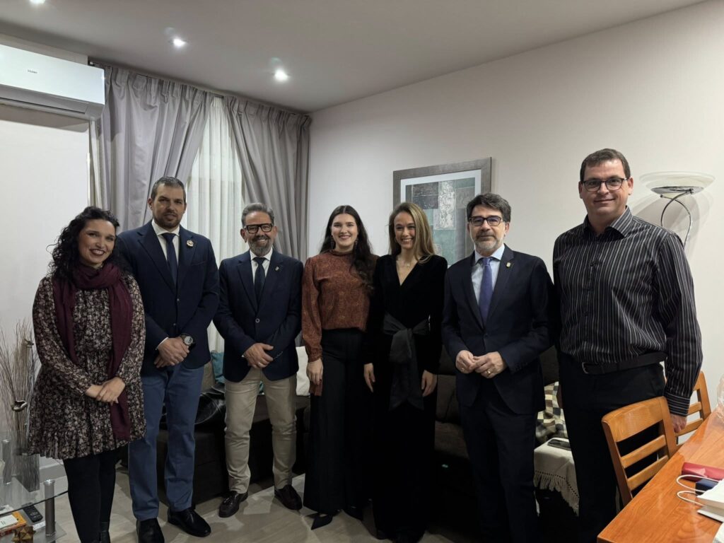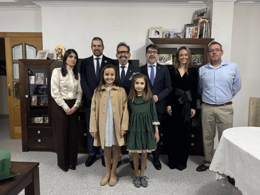 El alcalde, Pachi Pascual, acompañado del concejal de Fiestas, Cristian Gil, el presidente de la Comisión Municipal de Fiestas, Iván Torregrosa, y de las actuales la Reina de las Fiestas, Lucía Díaz, y la Reina de la Primavera, Carlota Pastor, han comenzado el acto visitando la vivienda de la pequeña Paula.
