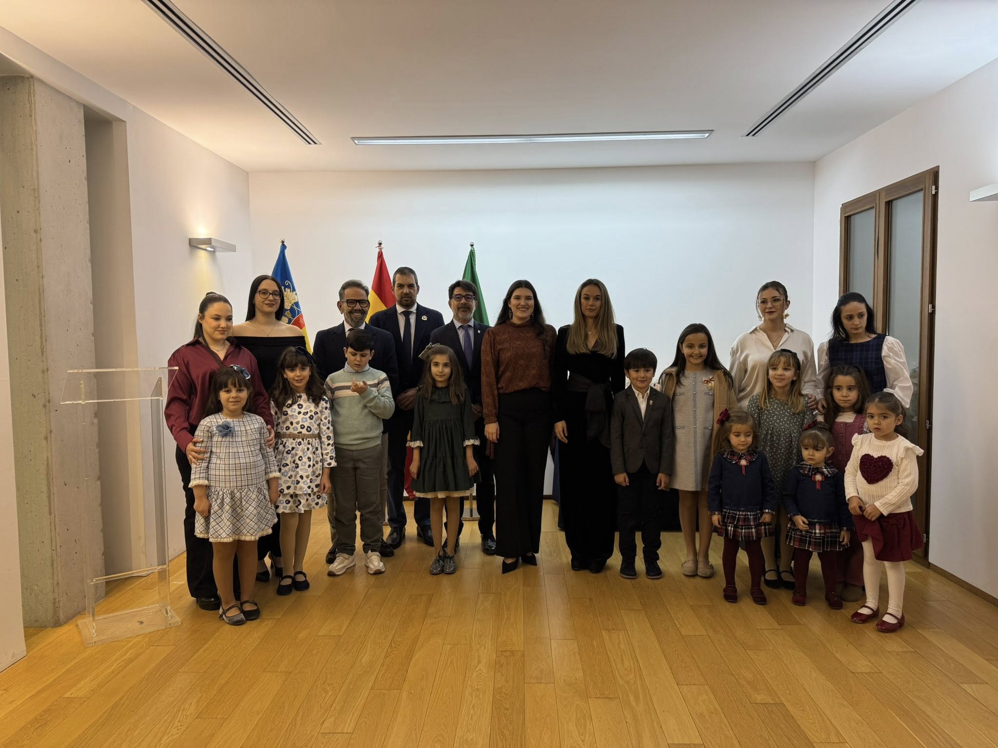 Una vez ambas sanviceteras han aceptado ostentar el cargo, el grupo se ha desplazado hasta el antiguo Ayuntamiento, situado en la Plaza de España, donde se encontraban el resto de niñas y jóvenes que las acompañarán conformando sus respectivas Cortes de Honor.