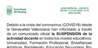 Puig anuncia la suspensión de la actividad educativa y formativa presencial...