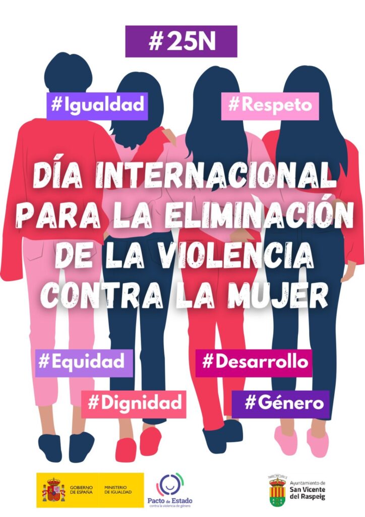 El Ayuntamiento de San Vicente del Raspeig, a través de la concejalía de Derechos Sociales, ha organizado un programa de actividades con motivo de la conmemoración del Día Internacional para la Eliminación de la Violencia contra la Mujer, que tendrá lugar el 25 de noviembre. El próximo martes se iniciarán con un acto institucional al mediodía en la plaza de la Comunidad Valenciana. La convocatoria incluye la lectura de un manifiesto por parte del alcalde, Pachi Pascual, y la concejal de Derechos Sociales, Mariela Torregrosa, acompañados de miembros de la Corporación, empleados municipales, colectivos, asociaciones y vecinos que quieran unirse a esta manifestación de solidaridad y respaldo.