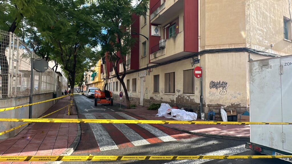 Se trata de unas labores que han arrancado justo a la hora de acceso de los niños y niñas a las clases, lo que ha provocado la crítica y el descontento de los familiares del CEIP, puesto que hay una grúa retirando restos de este material contaminante de los tejados de dos edificios antiguos a escasos metros de la puerta por donde pasan los escolares.