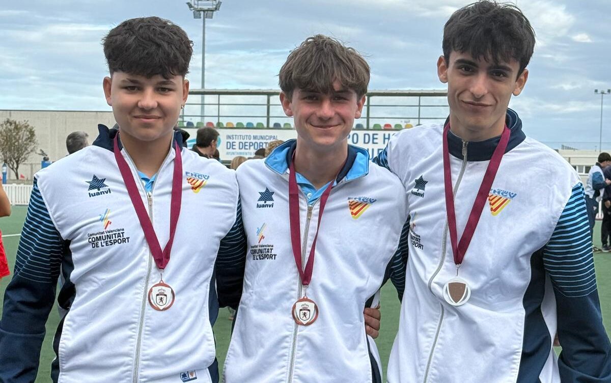 Tres jugadores del CA San Vicente-UA, Xavi Roig, Álvaro Blaya y Rubén Molera, han formado parte de la Selección Valenciana Sub-18 que este fin de semana ha logrado la medalla de bronce en el Campeonato de España Autonómico Sub-18 Masculino de Hockey Hierba celebrado en Santander. Los tres deportistas vuelven a Alicante con el merecido tercer puesto, resultado del gran esfuerzo realizado en las semanas previas y el gran juego desarrollado durante el campeonato realizado en tierras cántabras frente a las mejores selecciones autonómicas del país.